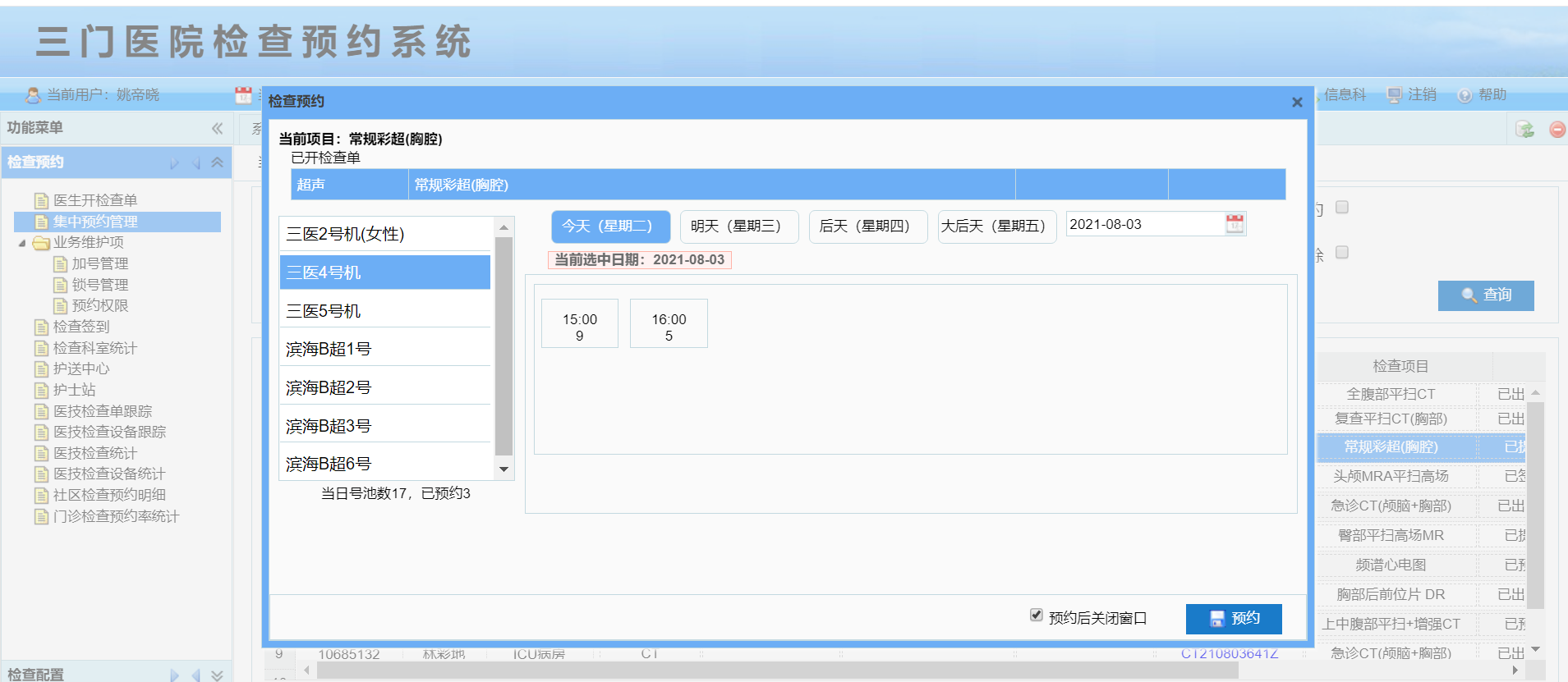 檢查預約系統實現檢查功能的排班、資源預約、患者預約時智能識別關鍵部位的互斥,為患者提供一站式服務中心,實現醫院檢查業務的患者“最多跑一次功能”。