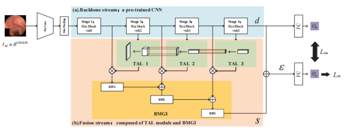 2.2: 利用人工智能的方法實現(xiàn)腸道中常見疾病分類,分為健康、息肉和潰瘍?nèi)悾?strong>成果Effective high-low-level feature aggregation network for WCE image classification, IEEE SPL 2021,系統(tǒng)框圖和性能如下所示