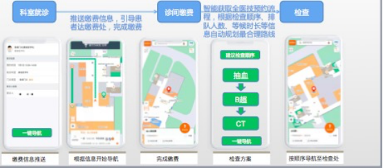 根據患者就診流程,解決患者候診及就診的過程,減少患者就診時間,同時針對患者一系列就診環節根據節點內容自發為患者開啟路線規劃,提升就醫的效率;